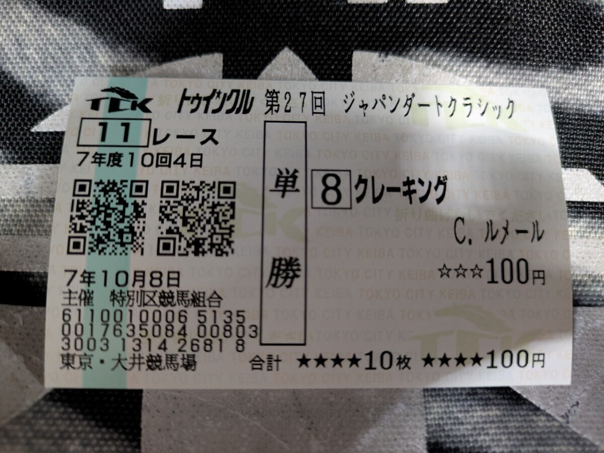 - 即決!ジャパンダートクラシック クレーキング 現地購入単勝馬券
