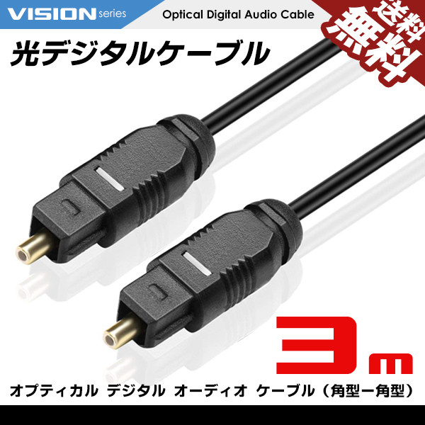 - 光デジタルケーブル 3m オーディオ OPTICAL SPDIF 光ケーブル TOSLINK 角型プラグ ネコポス 送料無料