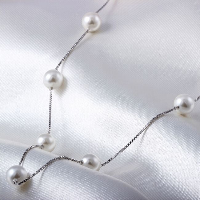 - 天然素材 人工真珠 8mm パール ステーション シルバー925 ネックレス