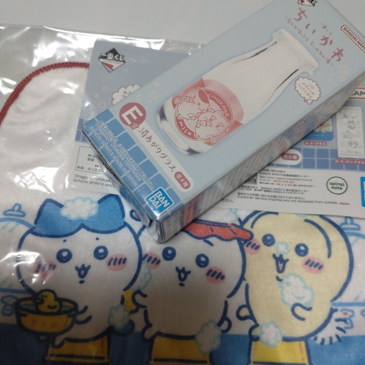 - オマケつき ちいかわ 一番くじ E賞 湯上がりグラス タオルつき ハチワレ うさぎ くりまんじゅう シーサー