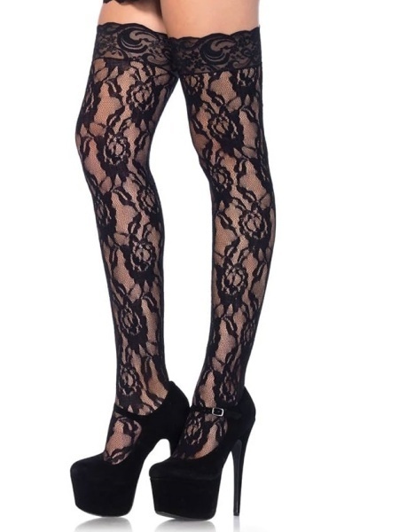 - ST9762◆レッグアベニュー ガーターストッキング レーストップ ローズ柄 黒 ワンサイズ(M-L) 新品