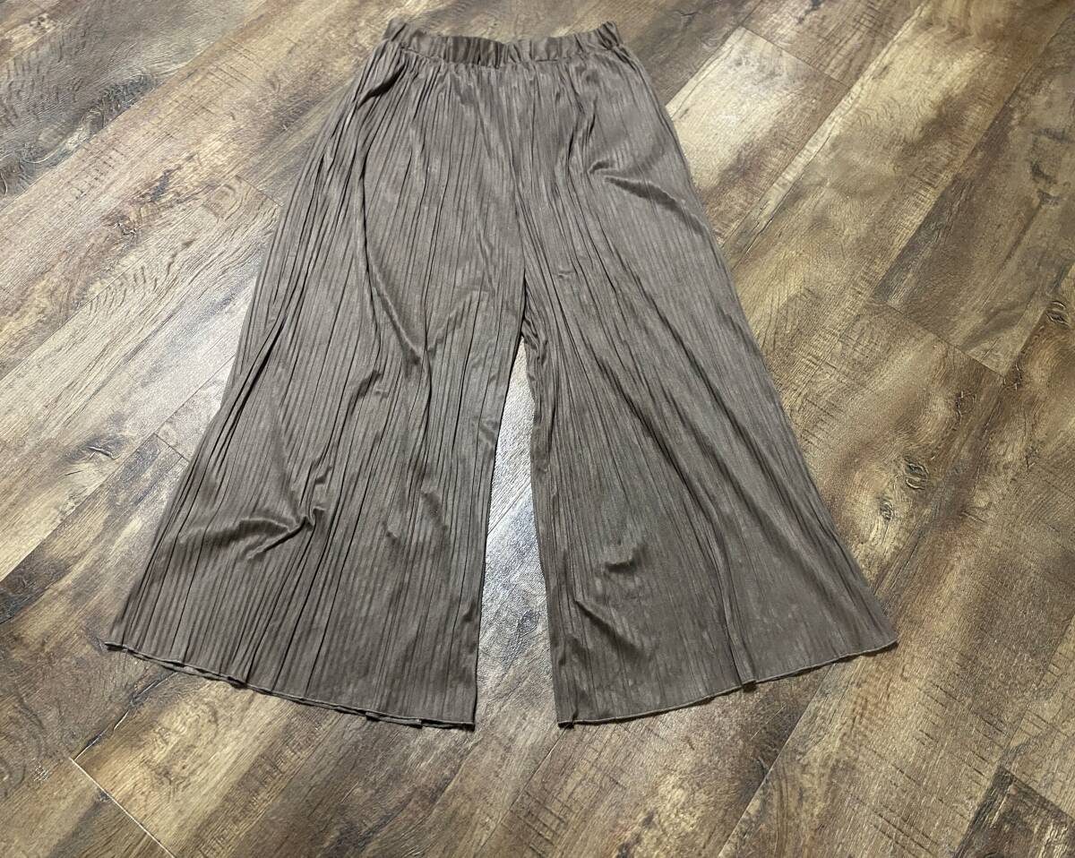 - 福祉バザー 細プリーツストレートパンツ茶系/3L