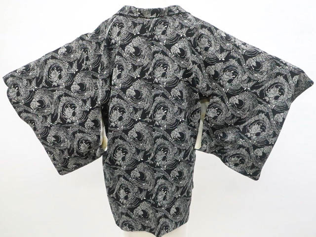 > 《古美術京松》リサイクル着物 羽織 昭和レトロ 蝶 羽織紐付 正絹 身丈約79cm 裄丈約63.5cm kyo7z10-1165