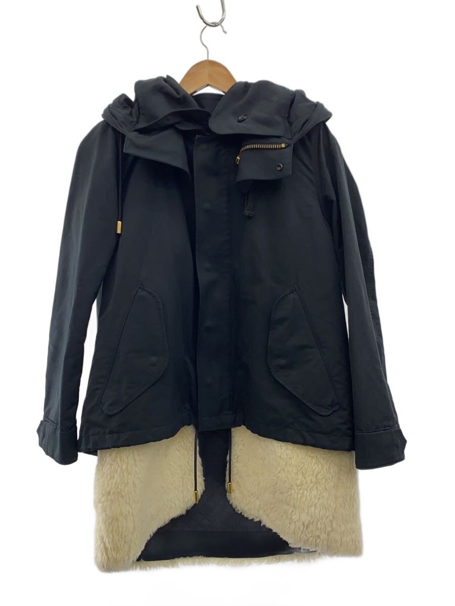 > THE RERACS◆モッズコート/36/ポリエステル/BLK/無地