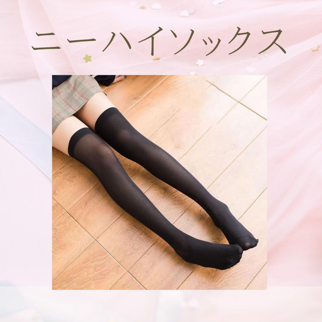 - 020K28 ニーハイソックス ロング 黒 ブラック コスプレ ゴスロリ 靴下