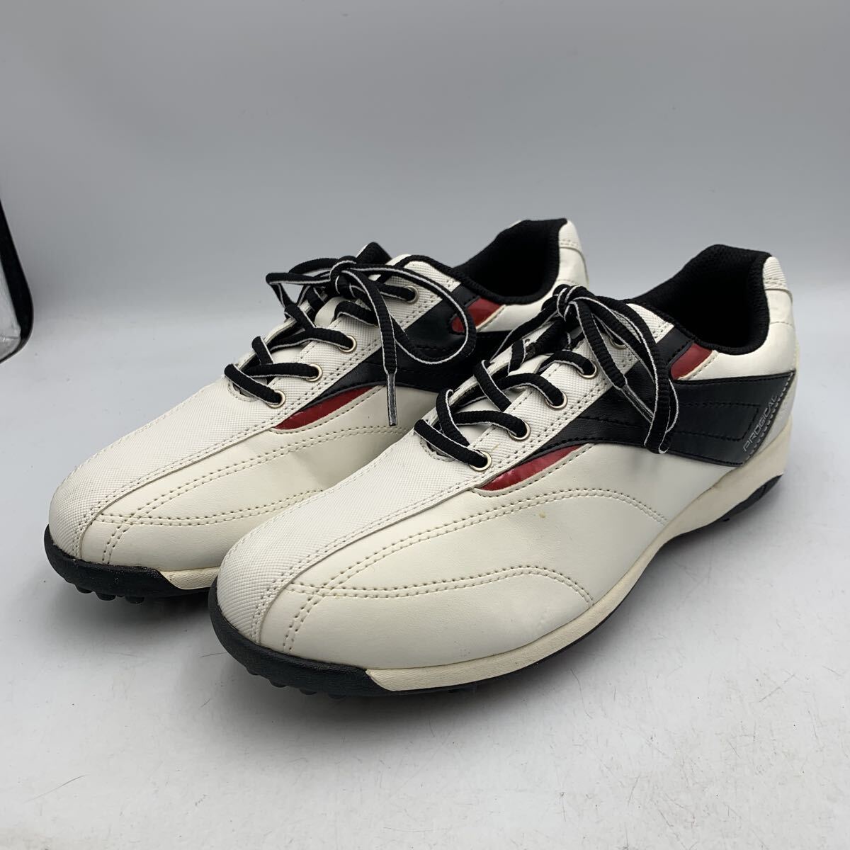 - V867 PROGICAL つるや ゴルフシューズ メンズ 24.5cm ホワイト ブラック ソフトスパイク 鋲