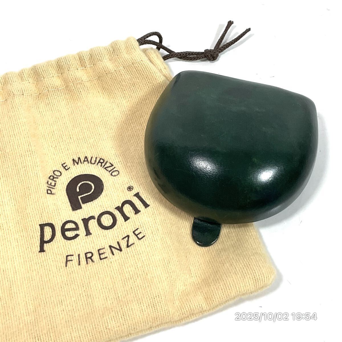 - Peroni ペローニ ロゴ型押し グリーン系カラー レザー 革 ハンドメイド 小銭入れ ウォレット 財布