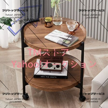 > ラウンドサイドテーブル 2段 キャスター付き モダン シンプル ナチュラル アメリカン コーヒーテーブル ディスプレイ ウォルナット