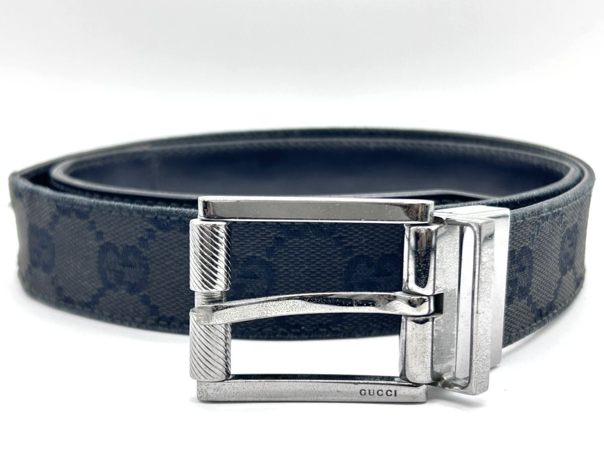 - 【R569】正規品 GUCCI グッチ GG柄 ベルト 総柄 ブラック メンズ 121295・479610 シルバー金具 b