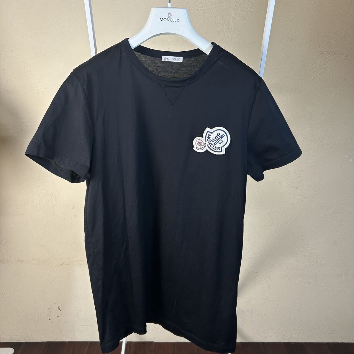 - 【未使用に近い】 MONCLERモンクレールダブルワッペン半袖Tシャツ黒S