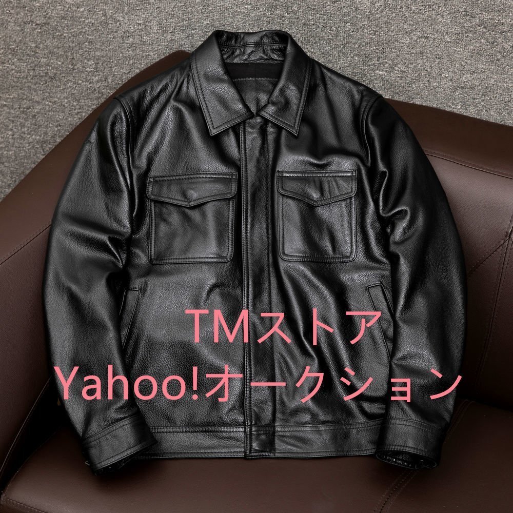 - 新入荷☆レザージャケット ライダースジャケット 革ジャン 牛革 立体裁断 メンズファッション バイクレザー S~5XL