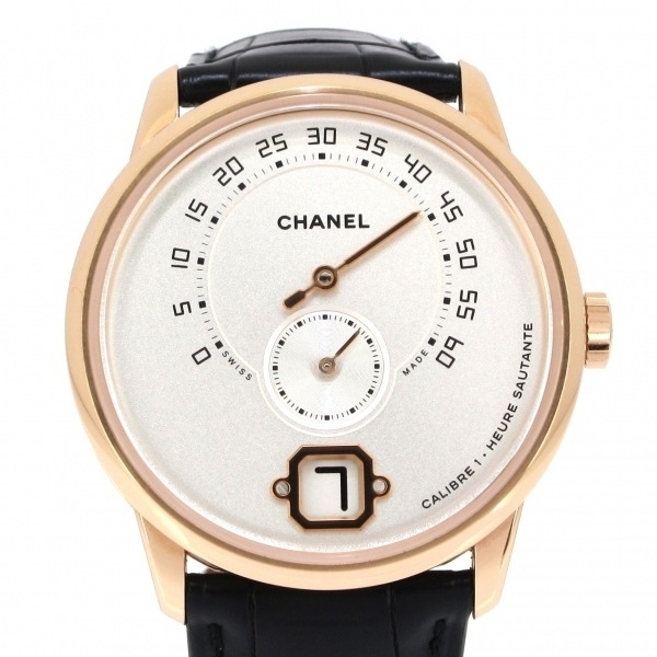 > シャネル 腕時計■美品 ムッシュー ドゥ シャネル H4800 メンズ K18ベージュゴールド/革ベルト/ジャンピングアワー/レトログラード分表示