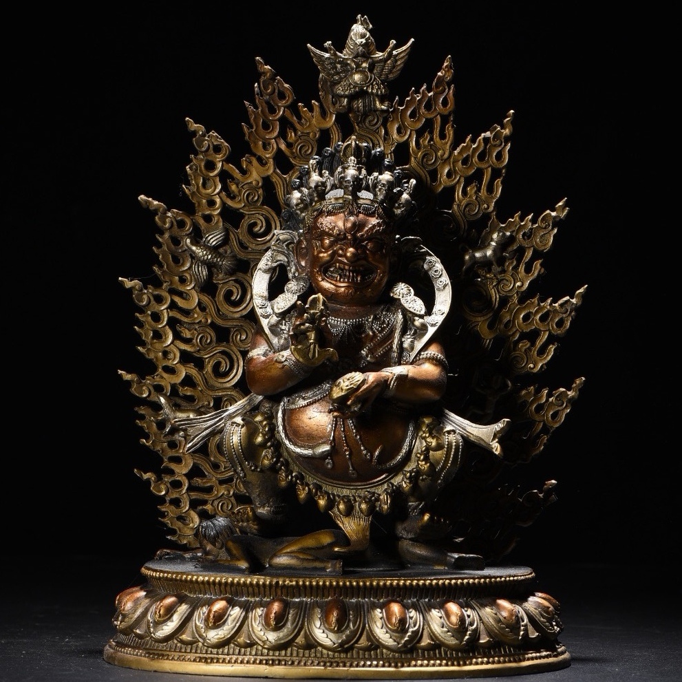 - 旧 明代 銅彩繪 大黑天仏像 銅器 中国古美術 古賞物 古置物 唐物 K710