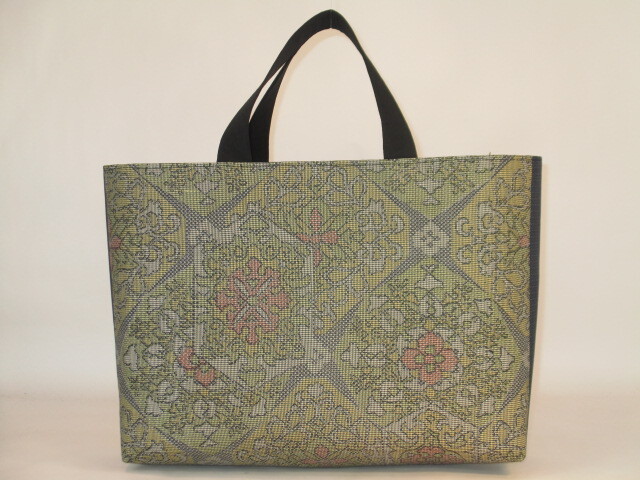 - 古布 正絹大島紬花柄で作ったたっぷりバッグ