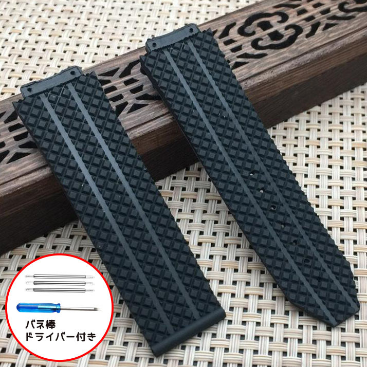 - ウブロ ビッグバン 交換ベルト ラバーベルト 24mm ブラック バネ棒付き 互換 ソフトシリコン 腕時計 HUBLOT 黒 ラバーバンド