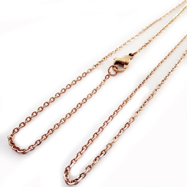 - 1.6mm幅37cm 短め チョーカーにも 平小豆 ステンレスチェーンネックレス ピンクゴールド
