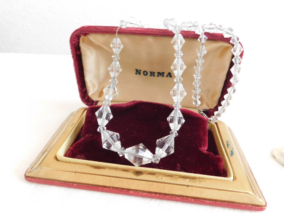- ヴィンテージネックレス 透明感あるクリスタルカットガラスの古い美しいネックレス ガラス 透明 ビンテージ ネックレス アンティーク