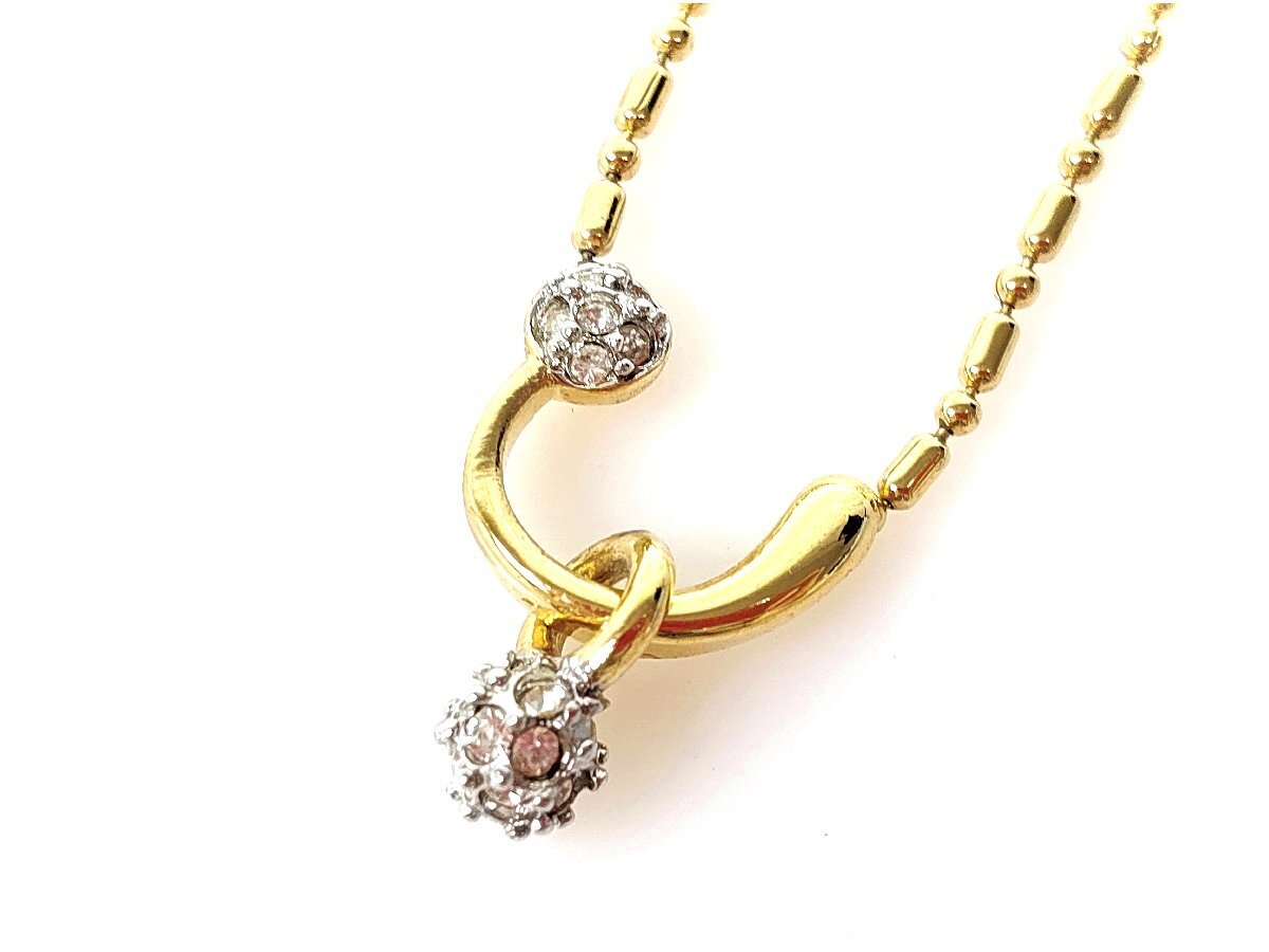 - ニナリッチ NINA RICCI ラインストーン パヴェ スイング ネックレス ゴールドカラー×シルバーカラー YAS-10768