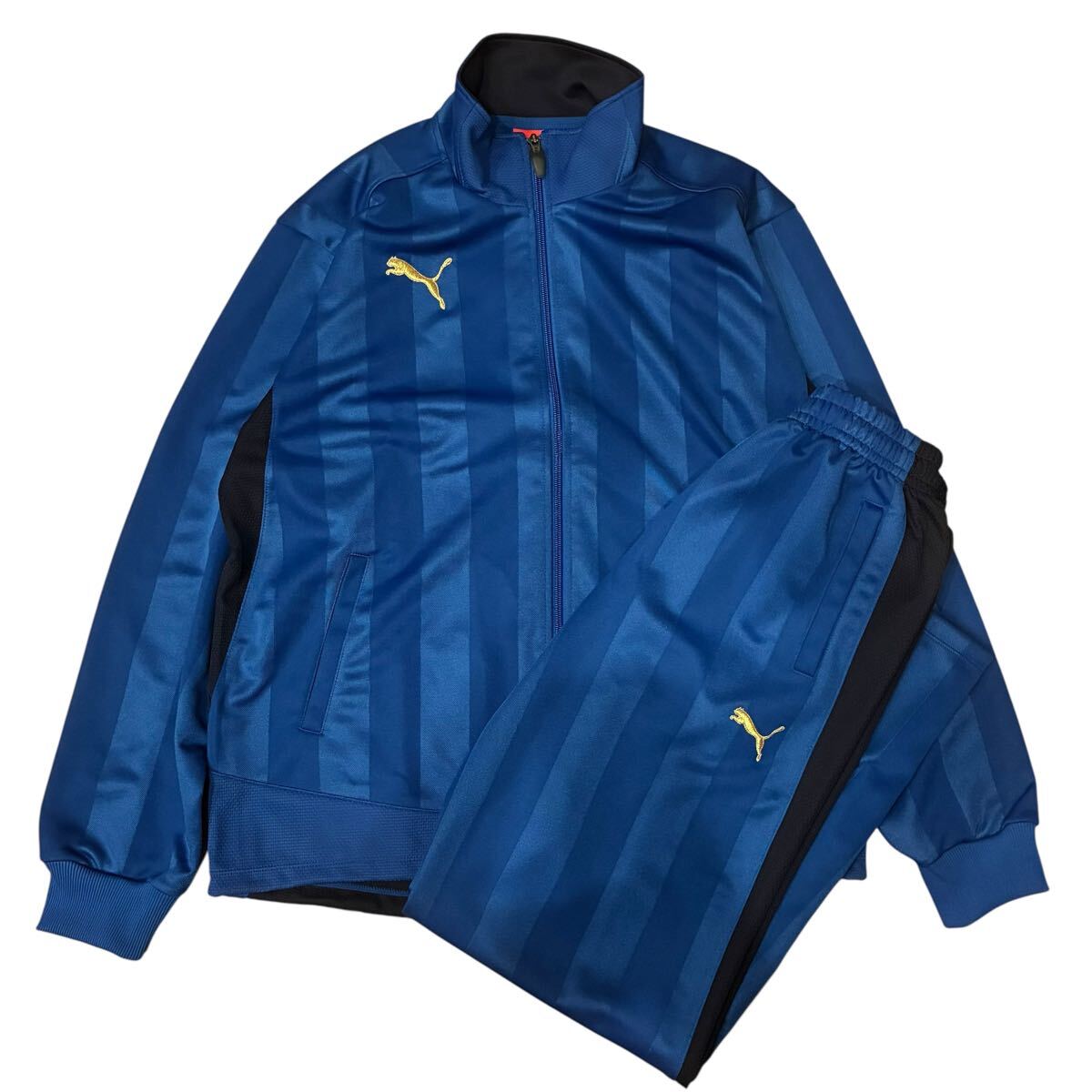 > 美品 未使用に近い PUMA プーマ 金ロゴ 刺繍 セットアップ ジャージ 上下セット プージャー ブルー Mサイズ