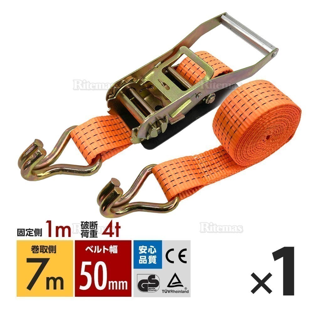 - ラッシングベルト フック トラック 幅 50mm ラチェットベルト ラチェット式 固定側1m 巻側7m 荷重4000kg タイダウンベルト 1本set 1年保証