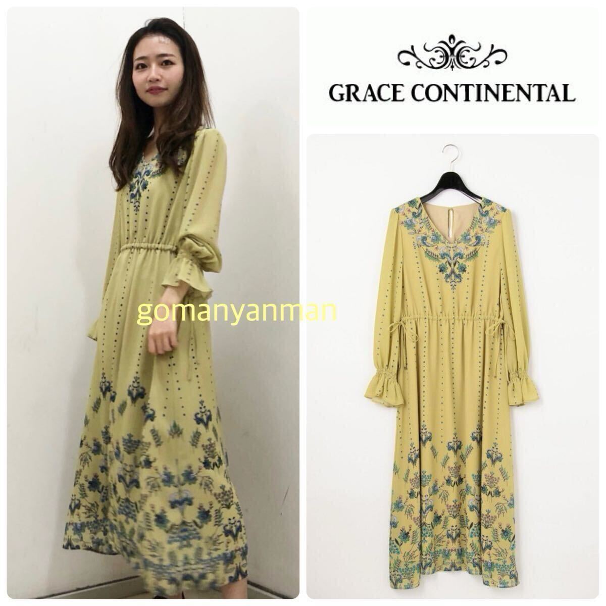 グレースコンチネンタル サラサパターンロングワンピース 新品 スタイリスト私物 パターンに合わせてサラサ柄をいれた、繊細なフローラル柄が印象的なワンピースです