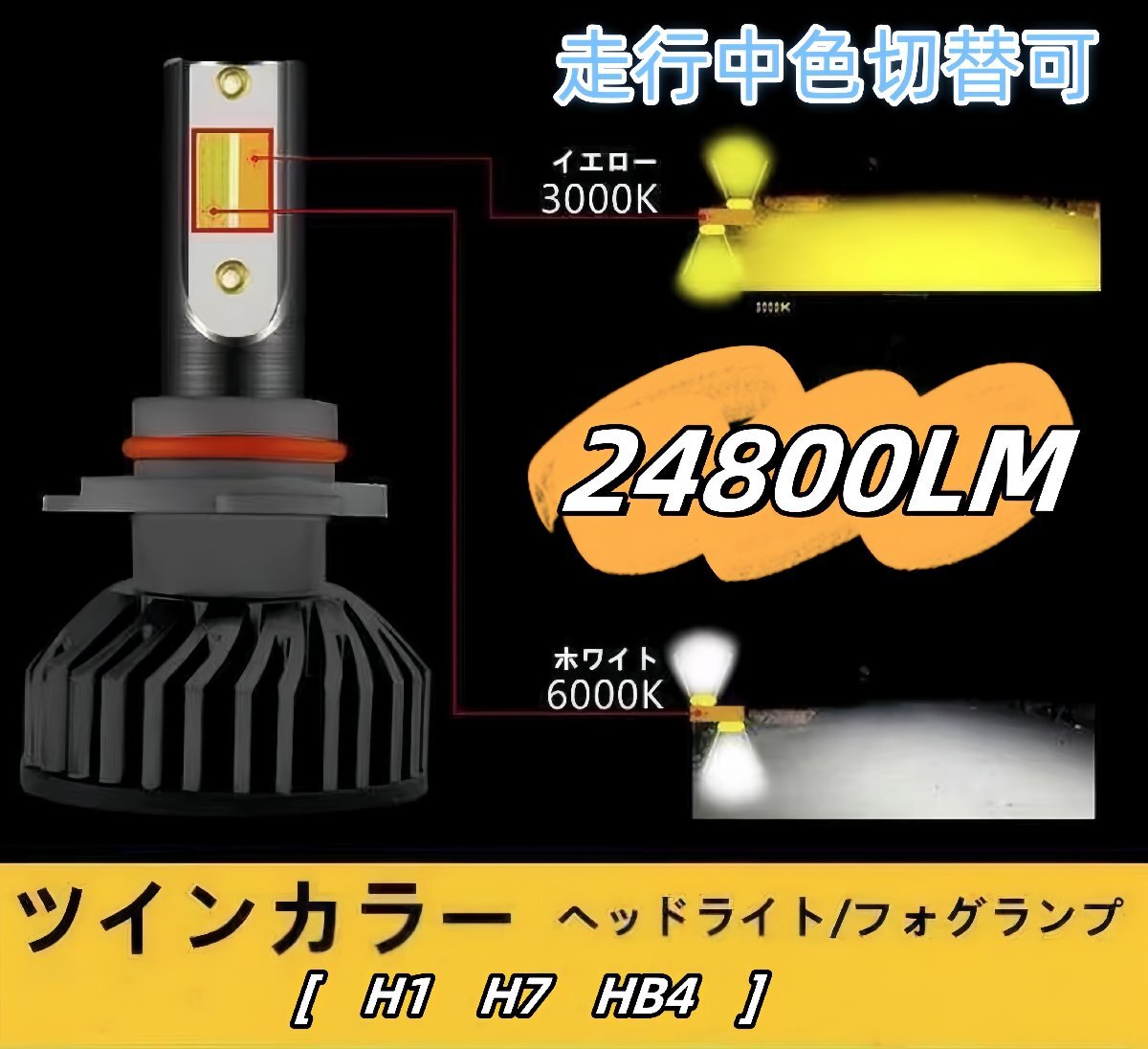 - 雨の日に安心 走行中切り替え可能 ツインカラー LED ヘッドライト フォグランプ H7 HB4 ホワイト イエロー
