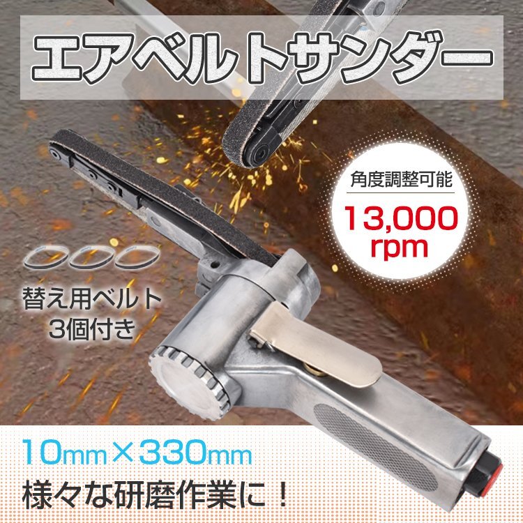 - 送料無料 エアーベルトサンダー 10mm 角度調整 替えベルト3本付き 錆落とし 研削 研磨 エアー工具 加工 仕上げ DIY ベルトサンダー sg040