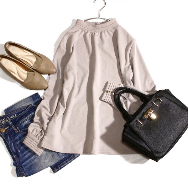 - 美品 EMMA JAMES エマジェイムス ビーズ・ラインストーン付き シボ・ジャージーストレッチ カットソー M 春 秋 25A10