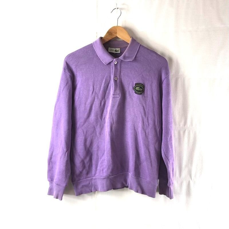 - シュミーズラコステ CHEMISE LACOSTE ポロシャツ 長袖 ロゴ刺繍 ワッペン 綿100% リブ 紫系 3サイズ 2025091200120