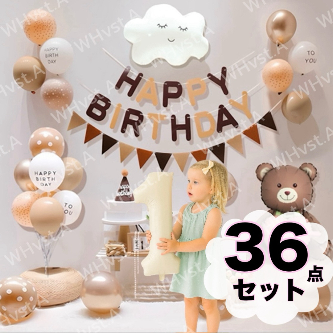 - 豪華36点セット 誕生日 飾り付け バルーン 1 ガーランド クマ くも 北欧風