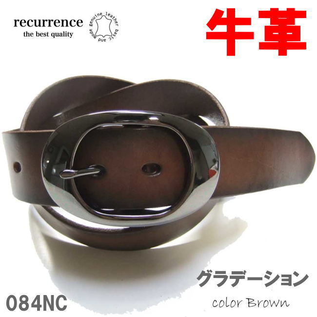 - ブラウン 084 グラデーション オーバル ブラックニッケル 本革 牛革 ベルト