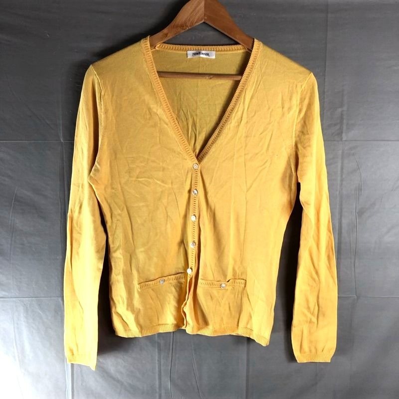 - ニューヨーカー NEWYORKER カーディガン Vネック 前ポケット コットン100% イエロー Lサイズ 2025091000096