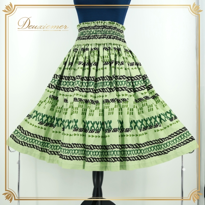 - フラダンス 衣装 パウスカート グリーン系 フラ ダンス 緑 黒 シングル レッスン ハワイアン 練習 淡い かわいい アロハ ブラック系