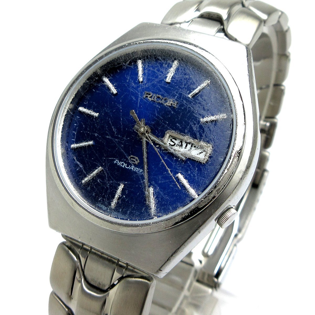 > リコー リクォーツ メンズ デイデイト ネイビー文字盤 時計 RICOH RIQUARTZ クォーツ 稼動品 ヴィンテージ