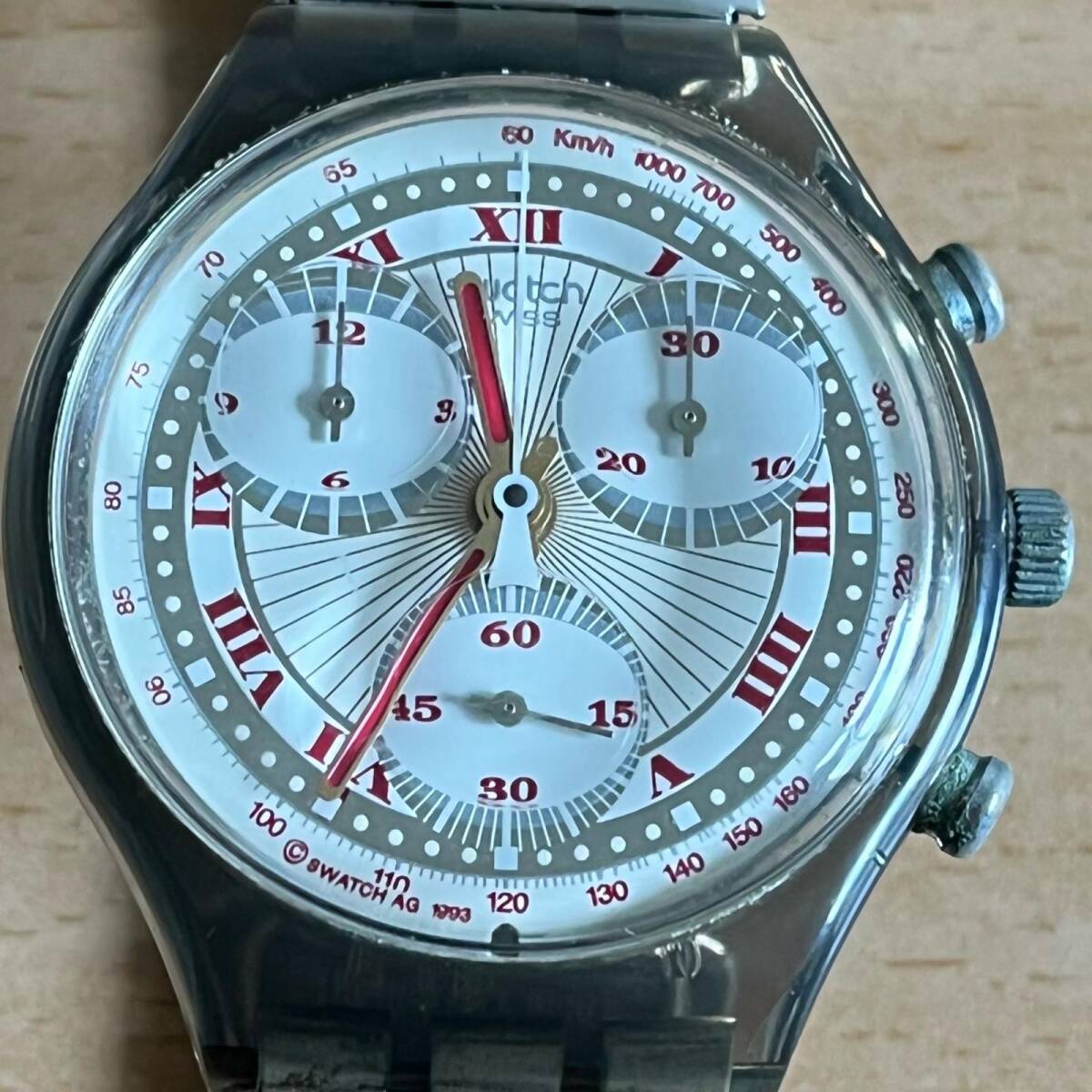 - 104-0928 swatch スウォッチ メンズ腕時計 金属ベルト クオーツ クロノグラフ 電池切れ 動作未確認