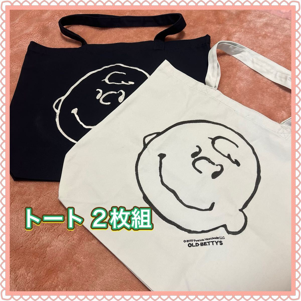 - チャーリーブラウン 刺繍 トートバッグ 黒白セット