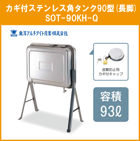 > 灯油タンク カギ付ステンレスオイルタンク(角型) 石油給湯器 ボイラー用 90リットル 長脚タイプ SOT-90KH-Q 東洋アルチタイト