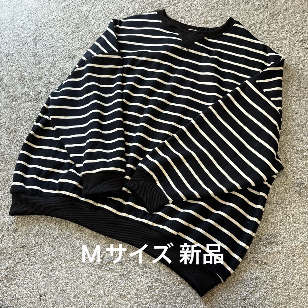 - 裏起毛ボーダーゆるめトレーナー黒M★新品21