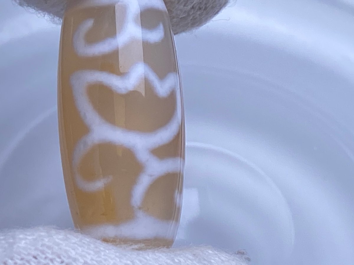 - 即決 0620a141 新入荷★【チベット老玉髄水蓮花天珠】★ 25x11mm(新品)