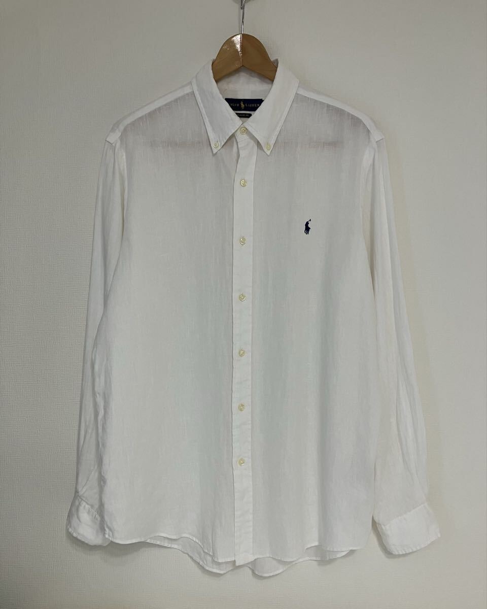 - 薄手 Ralph Lauren CLASSIC FIT ポニー刺繍 ボタンダウンシャツ リネン100% 麻 L ホワイト 白 ポロ ラルフローレン POLO