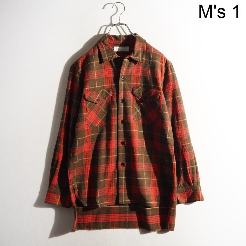 - P7410P ▼UNUSED アンユーズド▼ US0717 シルクコットン ネルシャツ ブラウン レッド チェック 1 秋~春 rb
