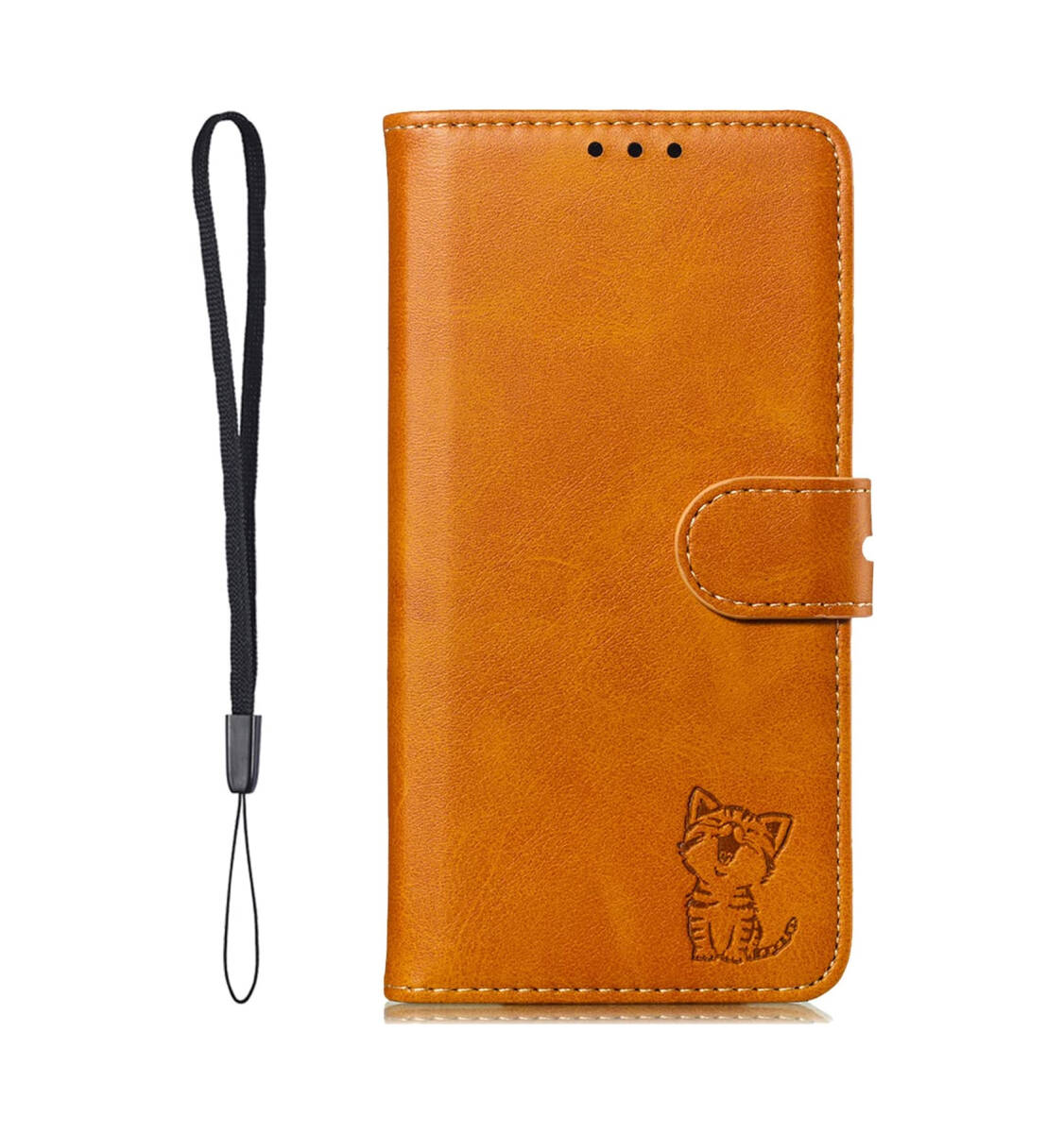 - Galaxy A53 5Gケース A103ZT 手帳型ケース 猫柄 ストラップ付き カード収納 ベルトマグネット スタンド機能 ノート型 ライトブラウン ay352