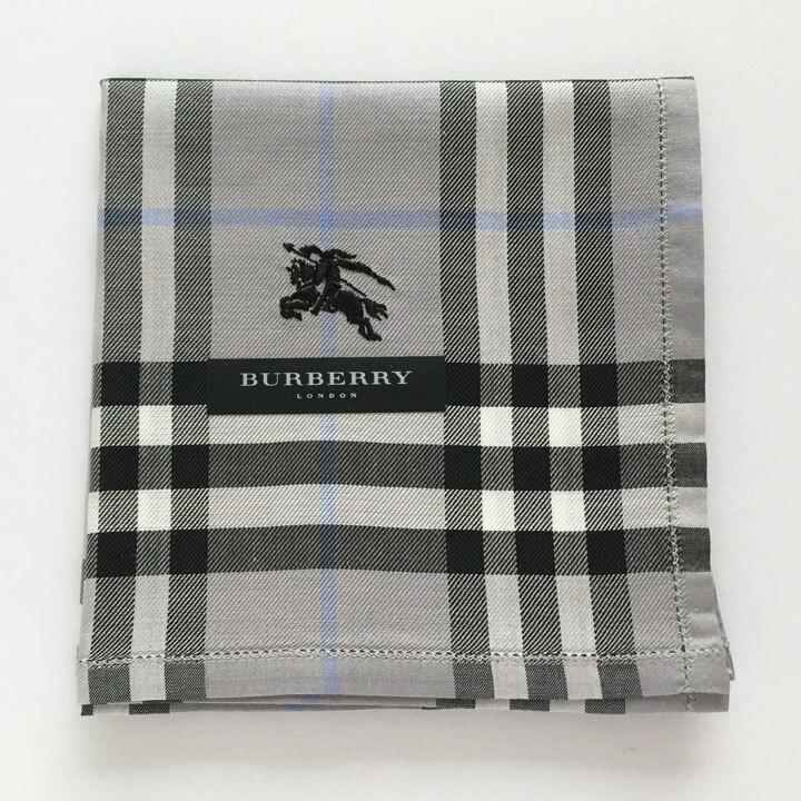 > バーバリー / BURBERRY ハンカチ 定番チェック グレー ブルーライン ホースマーク刺繍【6298】