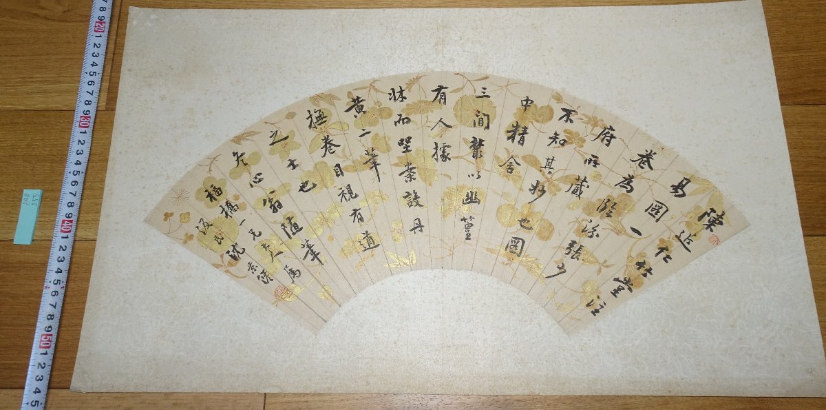 - rarebookkyoto 255 中国絵画藝術 沈景修・汲氏・秀水人・福橋為書 金冬心翁随筆・紙本金泥下絵花卉扇面 1880年頃作 京都古物