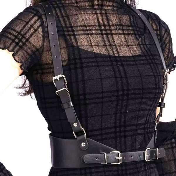 - ハーネスPUレザー調節可能なスタッズ装飾 ハーネス女性ゴシックランジェリー胸 ★鄭8[丨1[丨3