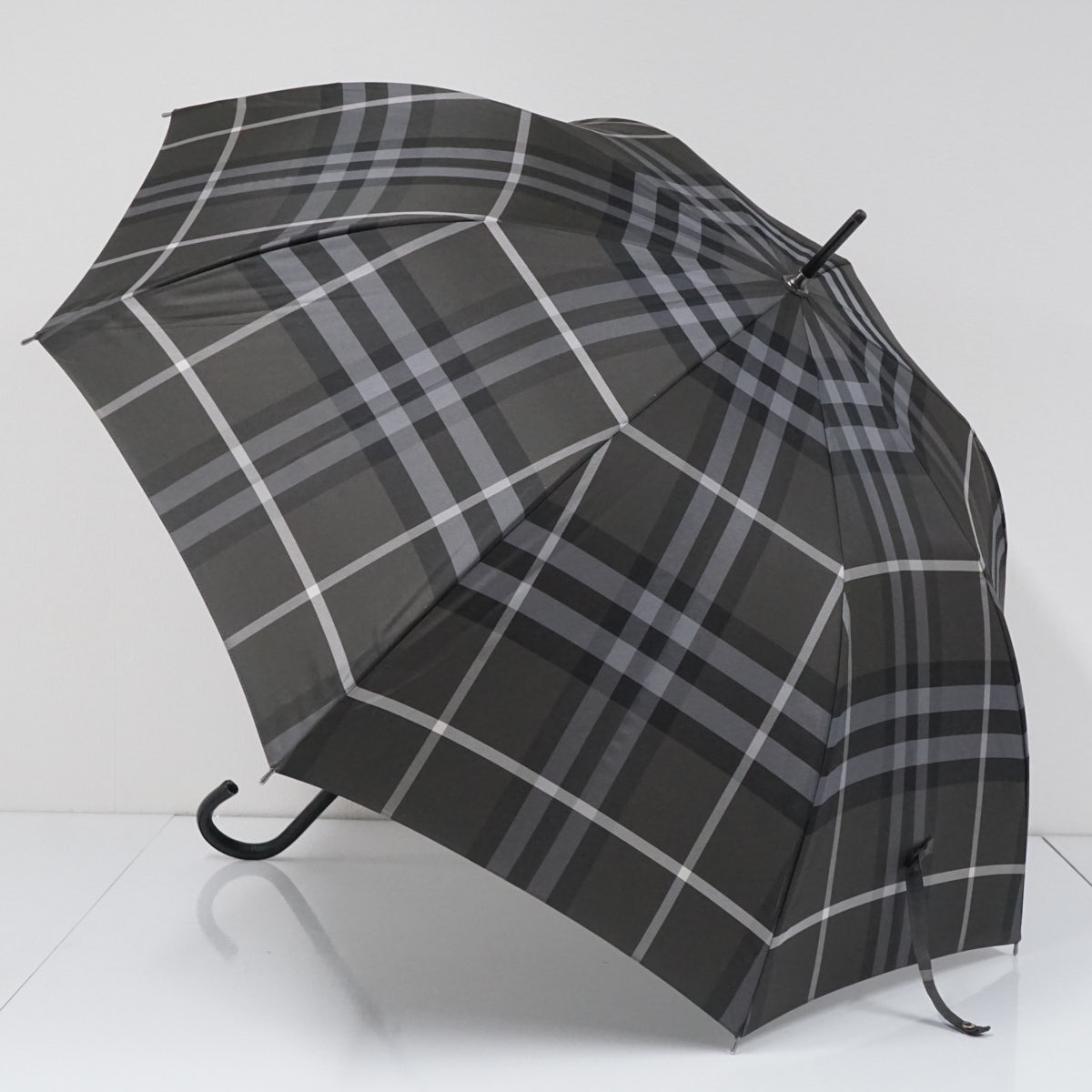 > 傘 BURBERRY バーバリー USED品 ジャガードチェック ダークグレー ジャンプ ブランド 高級 60cm S3265