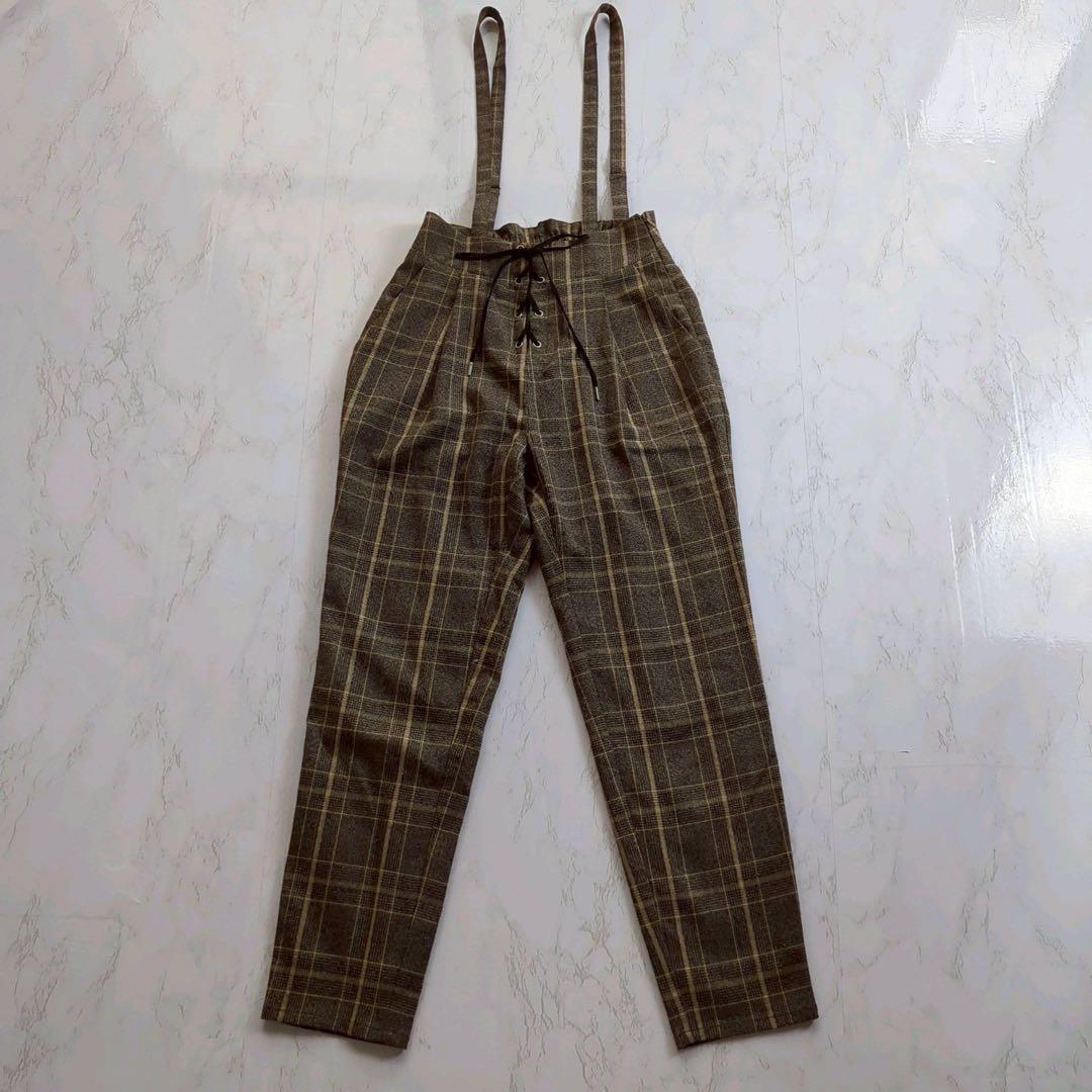 - リップサービス スピンドル セミワイド パンツ M チェック サスペンダー付き