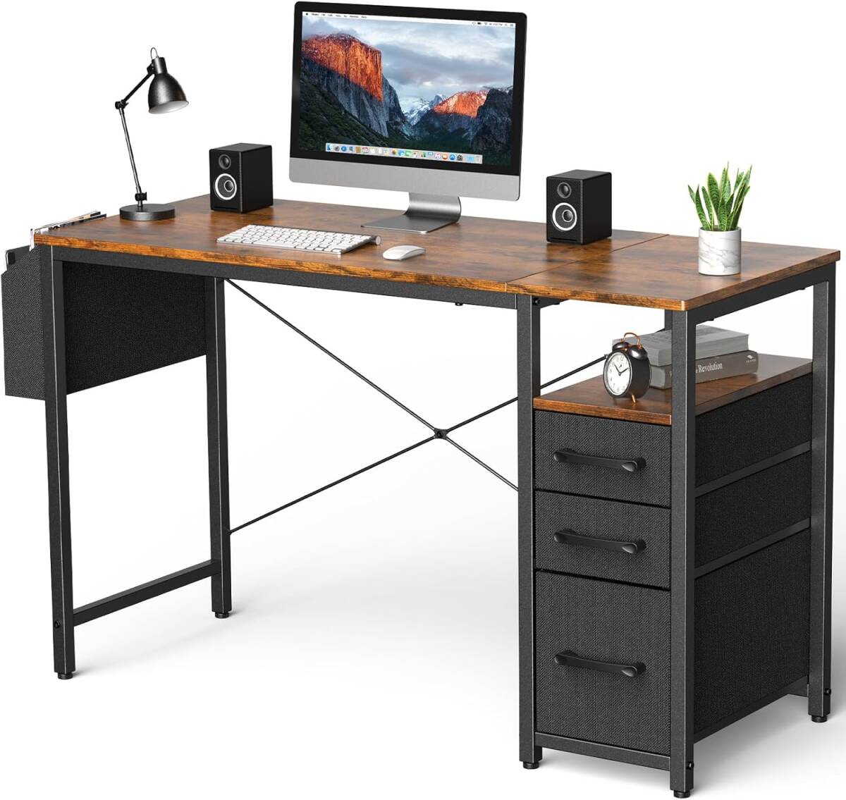- ブラウン色 幅120cm DOMICON ゲーミングデスク 引き出し パソコンデスク ゲームデスク PC desk 作業机 ワークデスク オフィス