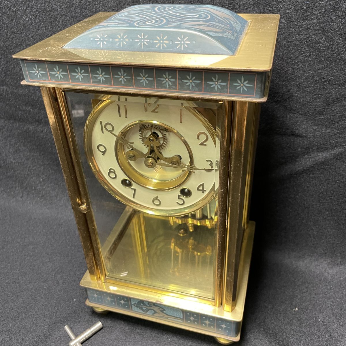 > 10r42 日本美術時計 Nマーク 4面ガラス ゼンマイ式 振り子時計 置き時計 機械式 インテリア 昭和レトロ ヴィンテージ 1000-スタート