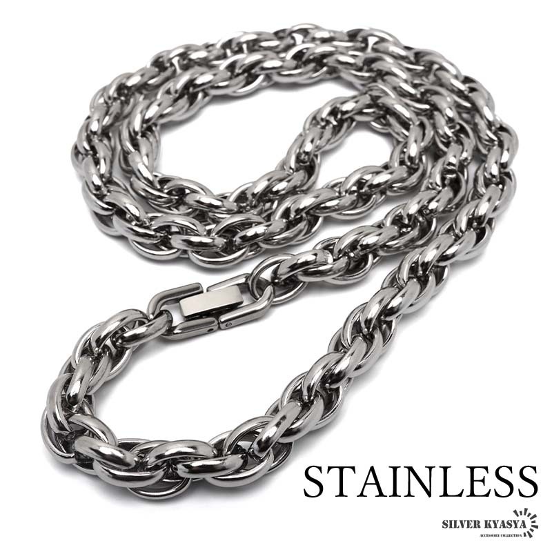 - (50cm) ステンレス ロープチェーンネックレス 太幅 ツイストチェーンネックレス シルバー 中折 メンズ 男性 金アレ対応